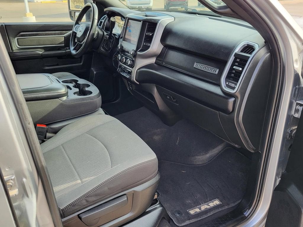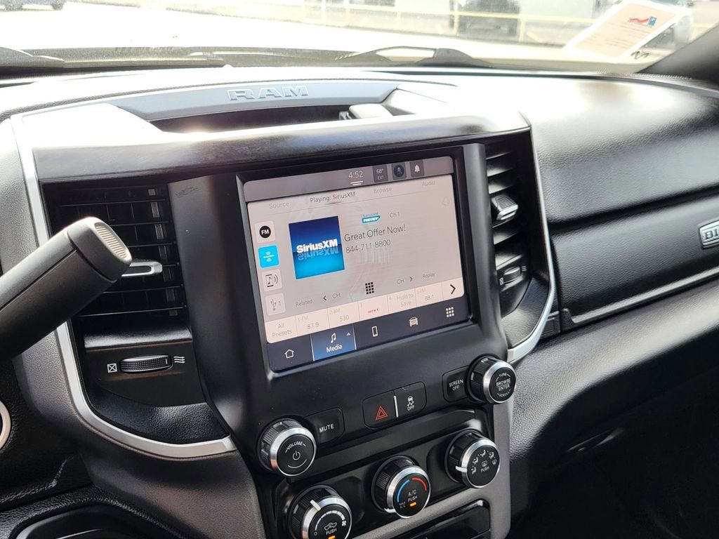 2nd Row In Floor Storage Bins, 4G LTE Wi-Fi Hot Spot, 8.4 Touchscreen Display, Apple CarPlay, Auto Power-Folding Mirrors, Big Horn IP Badge, Black Exterior Mirrors, Bluetooth® Handsfree Phone & Audio, Center Hub, Connectivity - US/Canada, Dual Glove Boxes, Exterior Mirrors Courtesy Lamps, Exterior Mirrors w/Heating Element, Exterior Mirrors w/Supplemental Signals, Foam Bottle Insert (Door Trim Panel), Footwell Courtesy Lamp, For Details, Visit DriveUconnect.com, For More Info, Call 800-643-2112, Forward & Reverse Utility Lights, Front Fog Lamps, Global Telematics Box Module (TBM), Glove Box Lamp, Google Android Auto, GPS Antenna Input, Integrated Center Stack Radio, Integrated Voice Command w/Bluetooth®, Leather Wrapped Steering Wheel, Level 1 Equipment Group, Locking Lower Glove Box, Mirror Running Lights, Power Adjust Mirrors, Power Adjustable Convex Aux Mirrors, Power Heated Fold Telescope Mirrors, Power Telescoping Mirrors, Premium Cloth 40/20/40 Bench Seat, Quick Order Package 2GZ Big Horn, Quick Order Package 2HZ Big Horn, Radio: Uconnect 5 W w/8.4 Display (A62), Rear Dome w/On/Off Switch Lamp, Selectable Tire Fill Alert, SiriusXM Radio Service, SiriusXM Satellite Radio, Steering Wheel Mounted Audio Controls, Wheels: 18 x 8.0 Polished Aluminum.